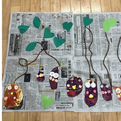 秋と言えば~・・・ 「おいも」ですよね☆ さくら組のお友だちでお芋の制作をしました。 ハサミで上手に切れて…