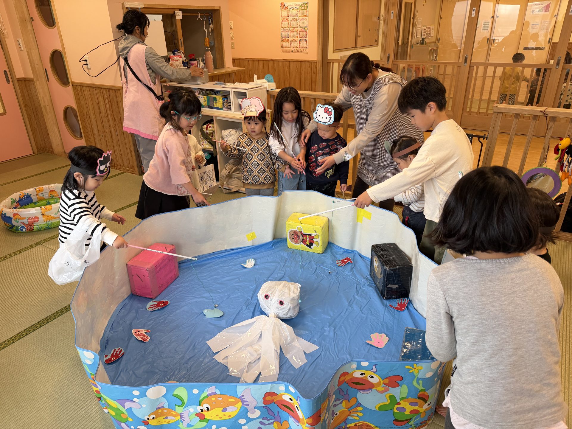 魚釣りやさんです♪ みんな真剣に魚を狙っていました🐡