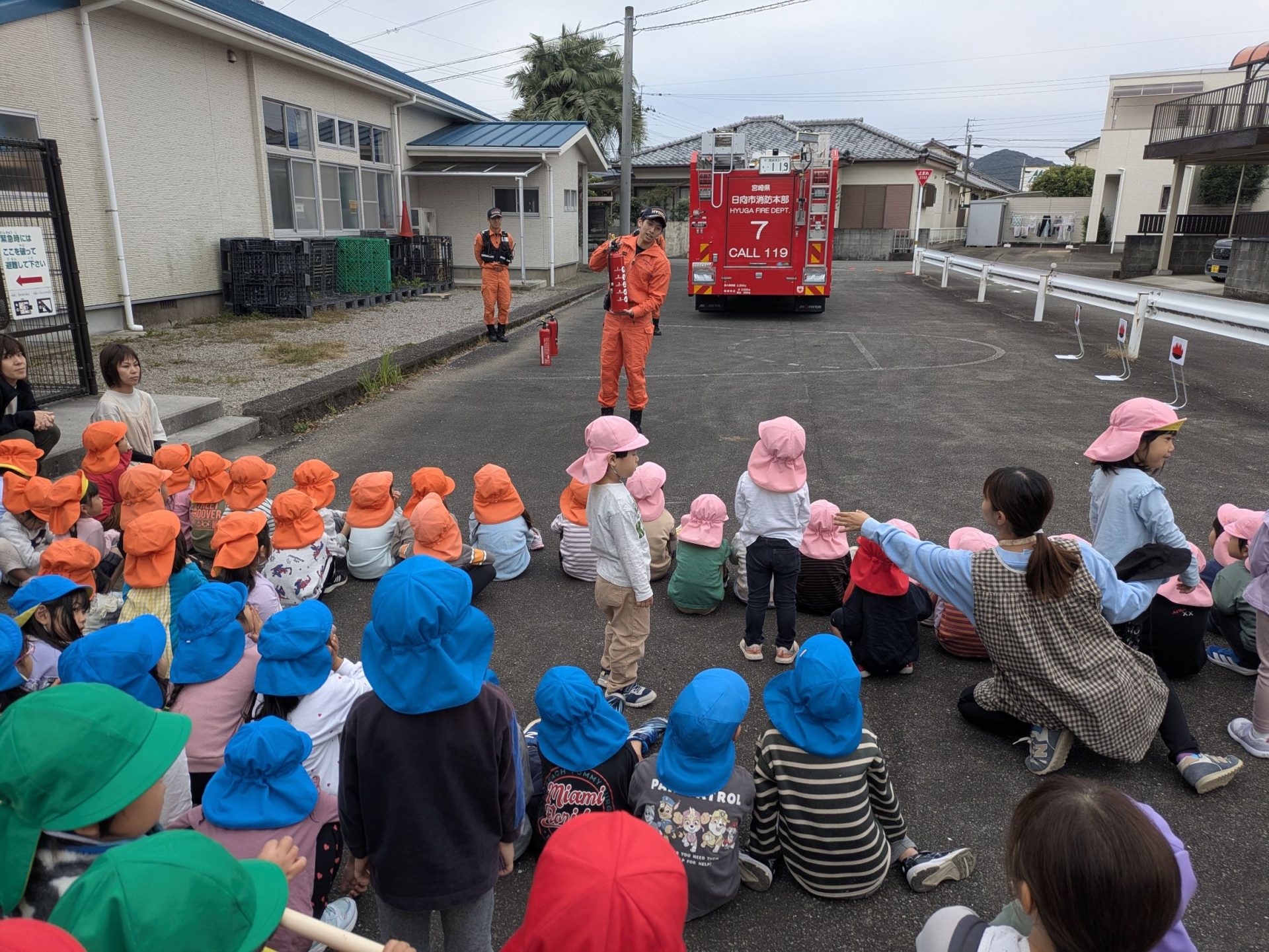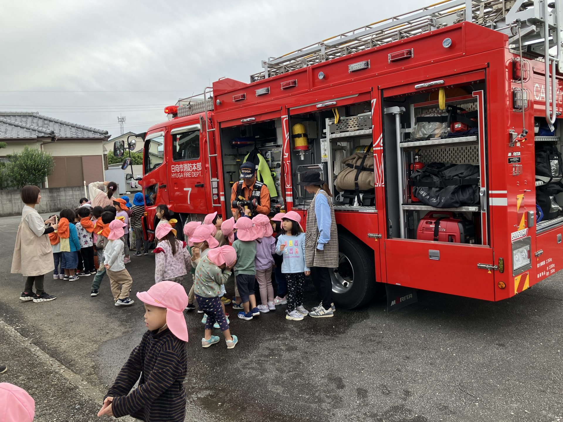 ちなみに・・・ 消防士さんが持ち運ぶカバンは3歳児クラスが5人で力を合わせてなんとか持ち上がりました! 消防士の皆さんありがとうございました。 最後は消防車に「またね~!」「ありがとう!」と、手を振って消防車を見送りました。